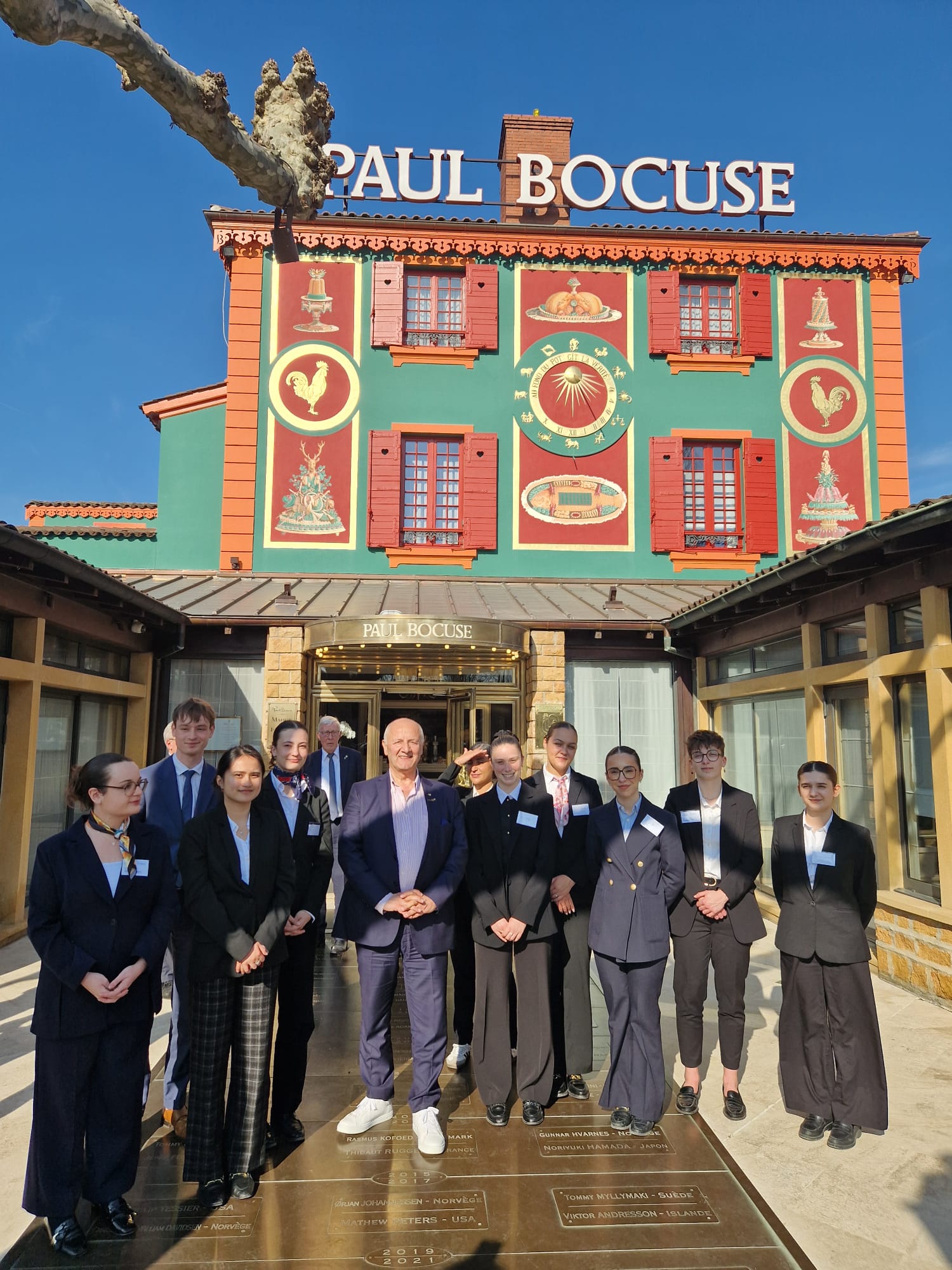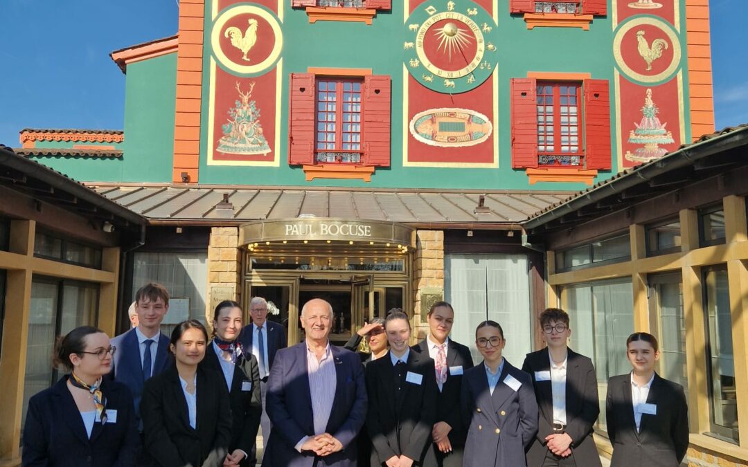 Le lendemain, nous avons eu le privilège de poursuivre cette expérience par une immersion dans l’héritage de la gastronomie française avec la visite du restaurant de Paul Bocuse, figure emblématique de la cuisine mondiale, ainsi que de l’abbaye où fut créé le tout premier restaurant de Monsieur Bocuse il y a près de 100 ans. À cette occasion, j’ai également eu l’honneur de remettre à Louis Morin un insigne en or commémoratif, daté de l’année de création du restaurant, en hommage à ce siècle d’histoire et d’excellence culinaire.